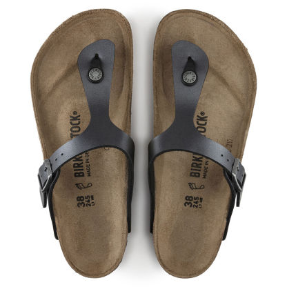 La sandale tong moderne de Birkentthhstock - la Gizeh. Ce style est un classique emblématique avec un soutien signature et un style raffiné et minimaliste. Une finition métallique chatoyante transforme le look classique en votre paire préférée. La tige est en Birko-Flor, un matériau synthétique résistant et doux pour la peau.